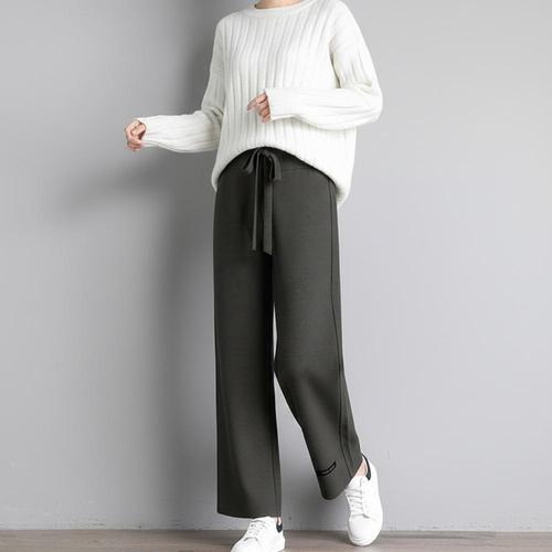 (스타일하우스) 슬랙스 팬츠 바지 여성 모직 와이드 밴딩 통바지 출근룩 오피스룩