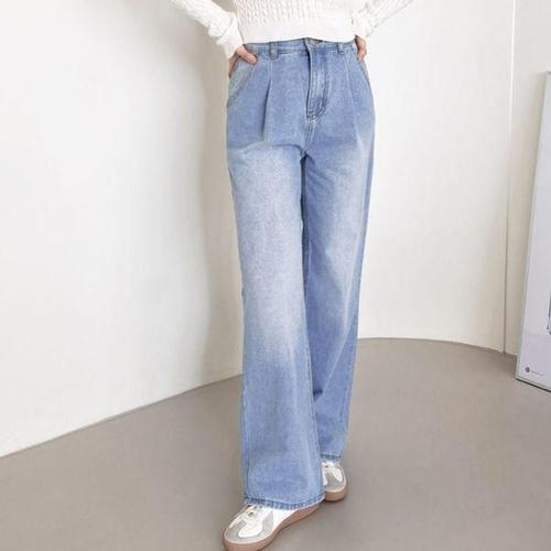 [에이치플러스몰]와이드 여자통청바지 연청 여성와이드청바지 여성