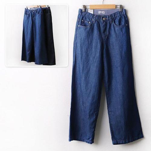 [에이치플러스몰]워싱 와이드 데님 마담옷 통 여성의류 빅사이즈