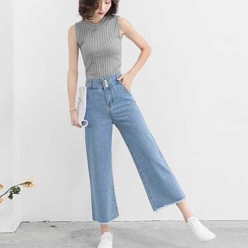 여성 와이드핏 난스판 반밴딩 통 청바지 3단기장 (키별선택) 5컬러 5사이즈