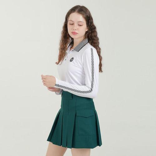 [지니골프]체크배색 여성 긴팔 골프티
