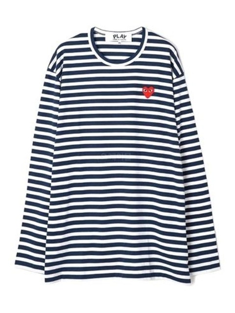 [꼼데가르송] 꼼데가르송 AX-T164-051 1 PLAY 플레이 레드 하트 와펜 스트라이프 공용 긴팔티