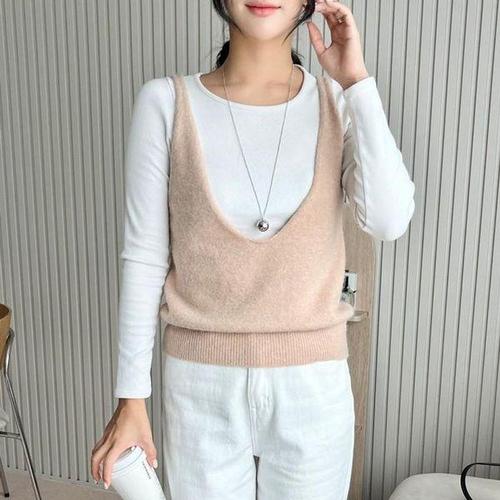 봄 가을 여자 레이어드 니트 조끼 빅사이즈 루즈핏 뒤트임 니트 베스트 풀오버 상의 데일리 여성 조끼 베스트 LCC