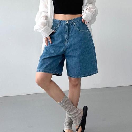 [신상오픈런]여자 썸머 버뮤다데님 와이드 로우라이즈 면 청반바지 (36390172)