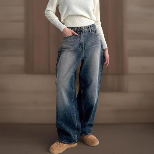 [신상오픈런]여성 로우라이즈 힙한 벌룬 와이드 청바지 가을 워싱 (40855141)