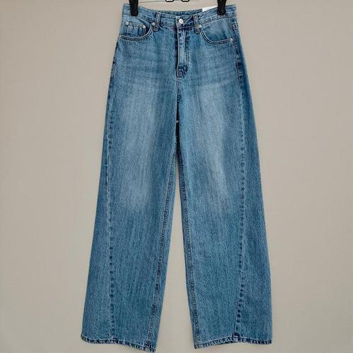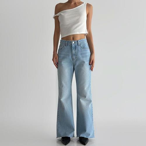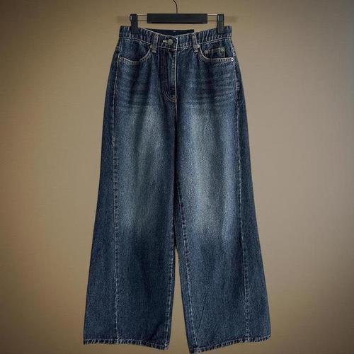 [신상오픈런]여자 면 절개 맥시와이드 로우라이즈 청바지 (35830218)