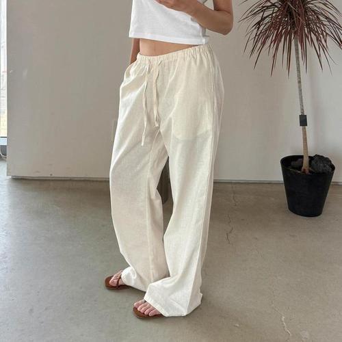 [신상오픈런]여성 파스텔 색상 린넨 로우라이즈 와이드 바지 (36232161)