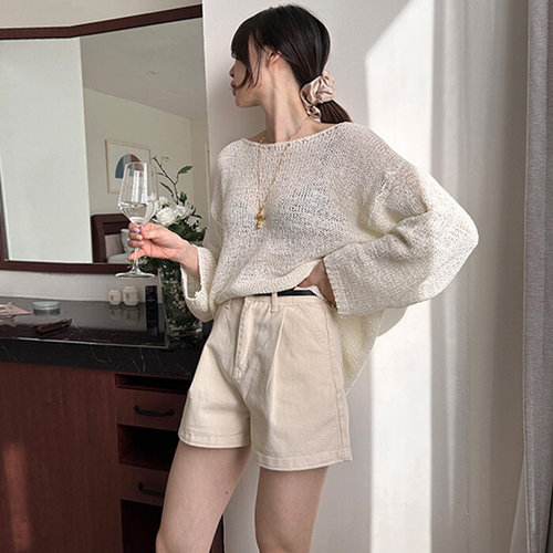 더클립 / 크리미 하이웨스트 핀턱 A라인 반바지 면반바지