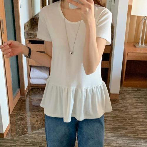 [신상오픈런]셔링 라운드넥 슬림핏 여자 스판반팔티 무지티 (29965497)