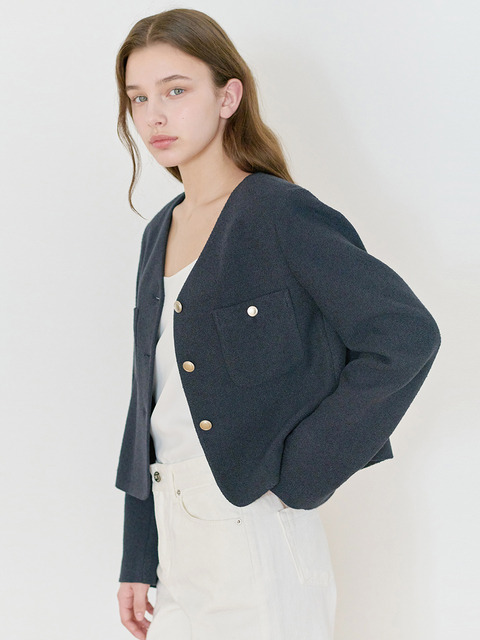 노카라 금장 버튼 페이크 포켓 페미닌 긴팔 자켓 (GODJK001D)