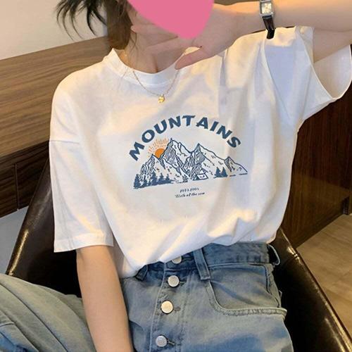 [셀럽하우스]여자 OYKQ7850 프린팅 스타일 반팔 박스티 1P 고품질 간절기 면