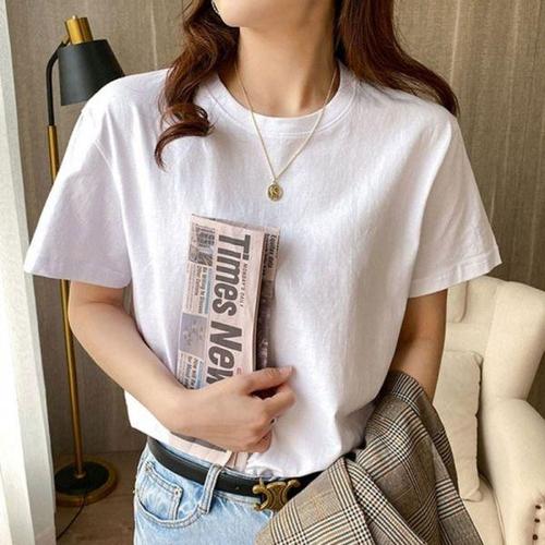 [엄지척]여성 라운드 캐주얼 반팔티셔츠 여름 박스티 반팔티_19615552_667501