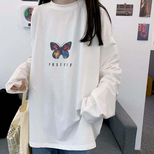 [셀럽하우스]여성 MLBI7864 체형커버 박스티 나비 프린트 간절기 긴팔티셔츠