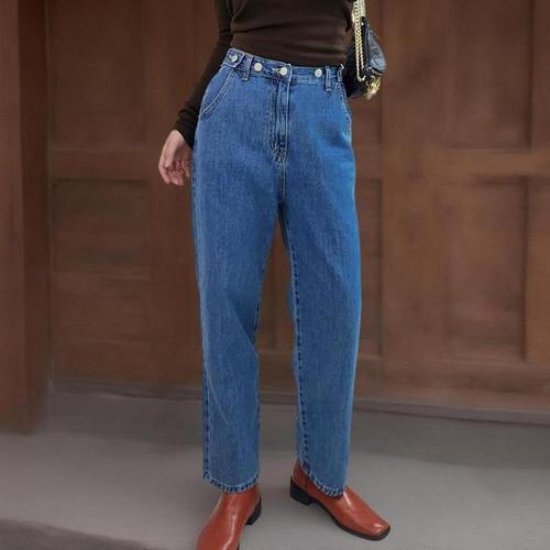 [신상오픈런]여자 비죠 버튼 세미 배기진 뒷밴딩 논스판 청바지 (41033358)
