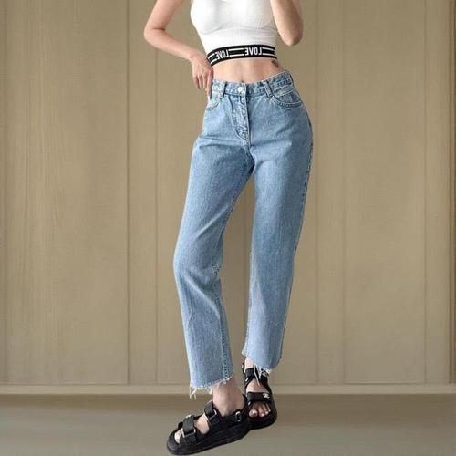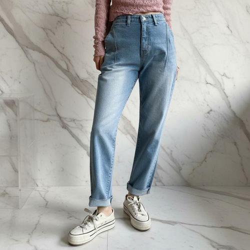 [신상오픈런]여성 연청 배기진 여름용 뒷절개 논스판 청바지 (36832890)