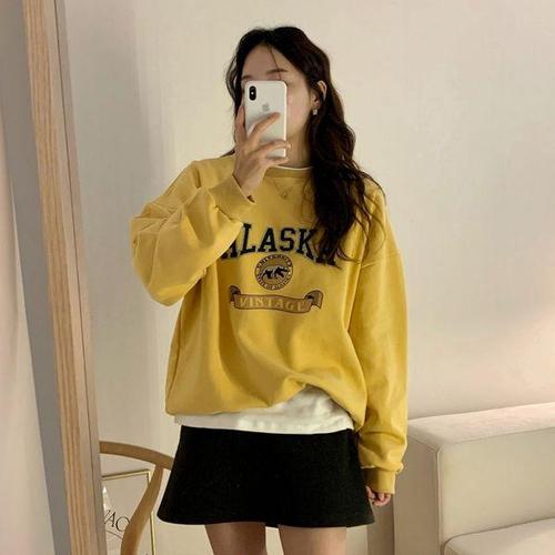 [유야]양기모 캐주얼 프린팅 면 박스 맨투맨 티셔츠 긴팔티 MTM -TS0591H- 빅사이즈 루즈핏 여성 겨울
