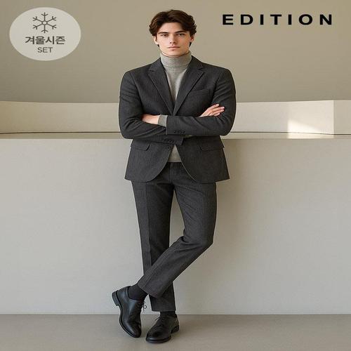 [에디션][에디션] 그레이 내추럴핏 트윌조직 셋업수트 (NED4KG1952_NED4PP1952_DGR)