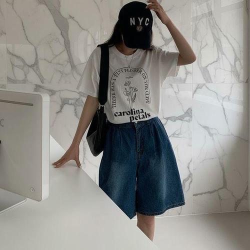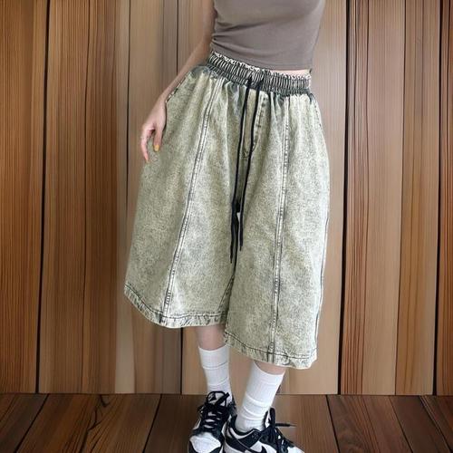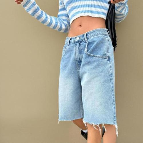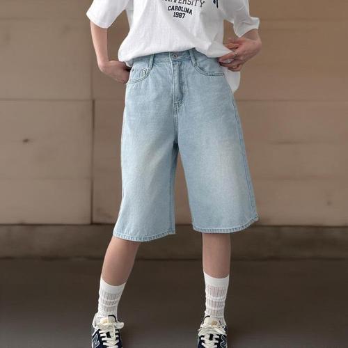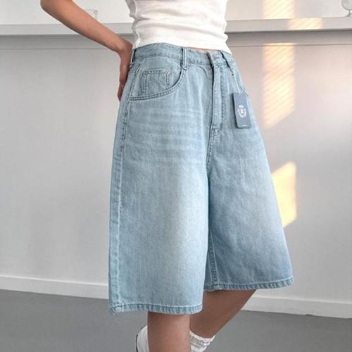 [신상오픈런]여성 버뮤다 데님 여름 와이드핏 5부 워싱 청반바지 (33142874)