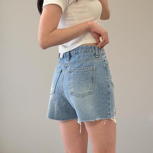[신상오픈런]여성 청반바지 컷팅 핫팬츠 연청 여름 워터밤 스타일 (38643077)