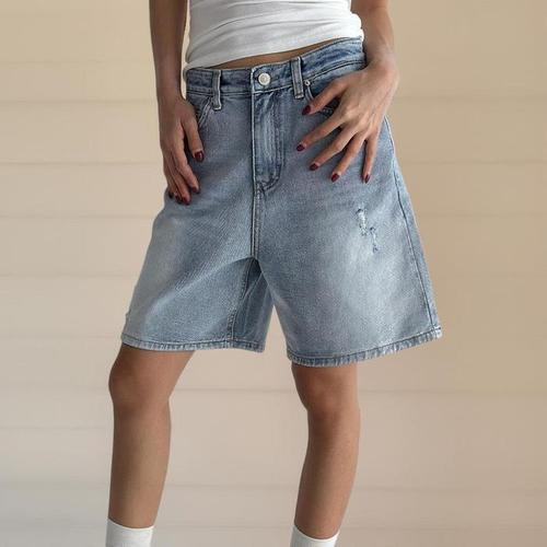 [신상오픈런]여성 데미지 워싱 와이드 버뮤다 청반바지 스크래치 스타일 (36832930)