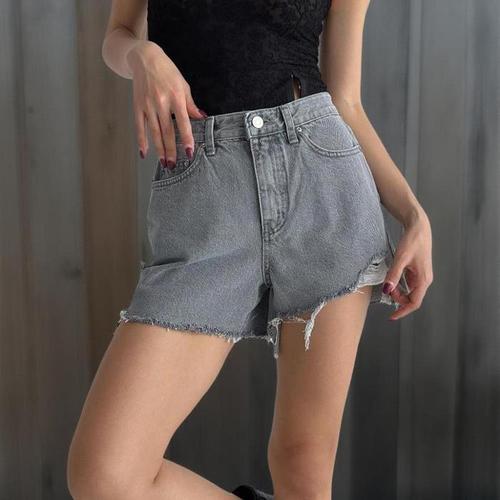 [신상오픈런]여성 구제 허벅지 컷팅 그레이 여름 청반바지 언발란스 디자인 (36832928)