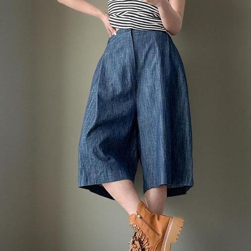 [신상오픈런]여성 연청 버뮤다 와이드 청반바지 여름 캐주얼 (34705962)
