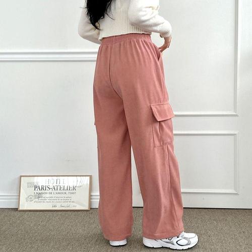 지나홈 여성 와이드 겨울 기모 스판 카고 팬츠 스트링 바지