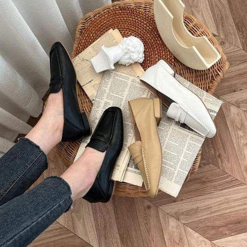 [셀러허브_여성트랜드패션]여성 소가죽 페니 로퍼 키높이 통굽 스퀘어 쿠션