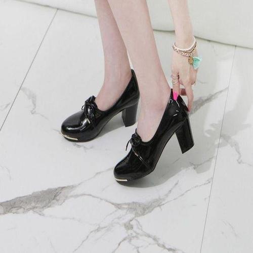 [셀러허브_여성트랜드패션]로퍼힐 통굽 레이스업 에나멜 키높이 둥근코 유광