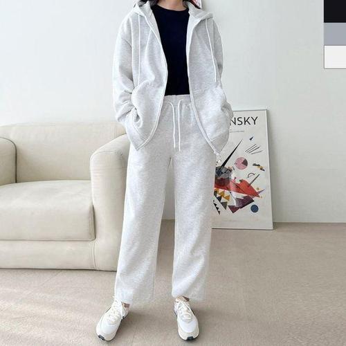 [에이치플러스몰]여자 기모와이드바지 후드 트레이닝세트