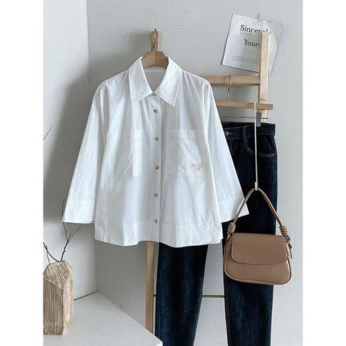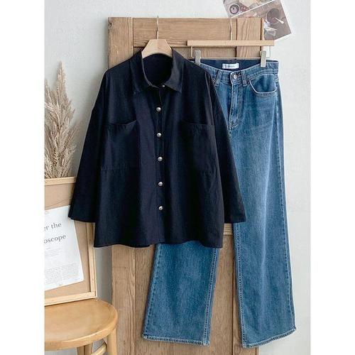 [에이치플러스몰]봄 인기 여성브라우스셔츠 여름 7부 감성 루즈핏 포켓
