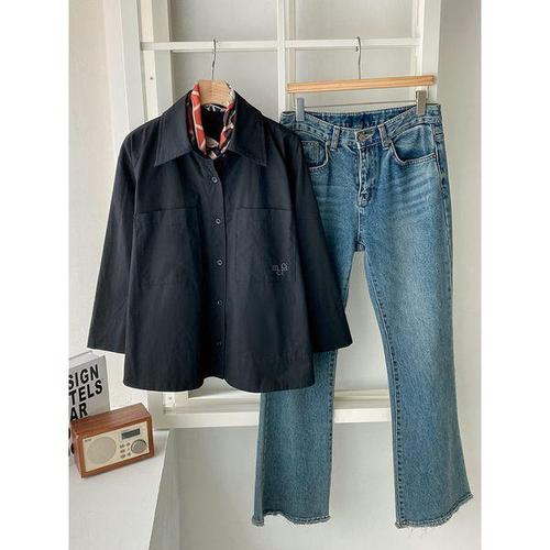 옷자락 / 여자 칠부남방 투포켓 카라 박스핏 출근룩 여름 셔츠