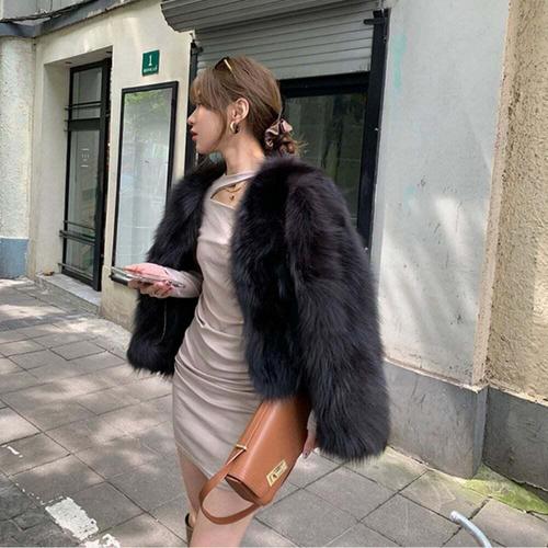 [셀럽하우스]연말룩 XIEQ0338 겨울 데이트룩 페미닌 페이크 폭스 퍼 숏 자켓