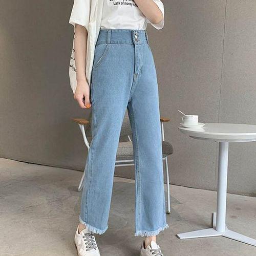 [옷자락]여성 일상 연청 면 세미 와이드 롱 청바지