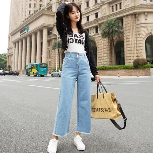 [다잇템]여성 데님팬츠 와이드핏 찢어진 연청색