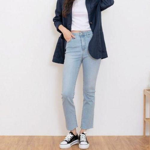 [옷자락] 여성 일상 연청 면 세미 와이드 롱 청바지