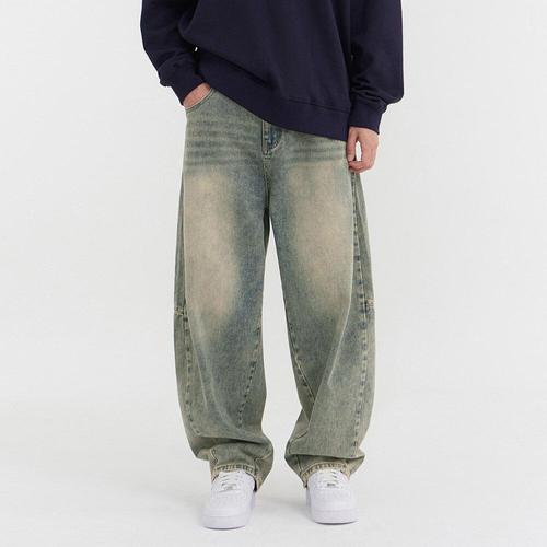 [진마니아]연청 원턱 워싱 벌룬핏 남여공용 와이드 데님 팬츠
