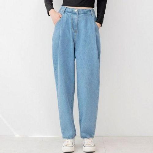 [에이치플러스몰]핀턱 오버핏 배기 청바지 연청 데님 팬츠 허리 뒷밴딩