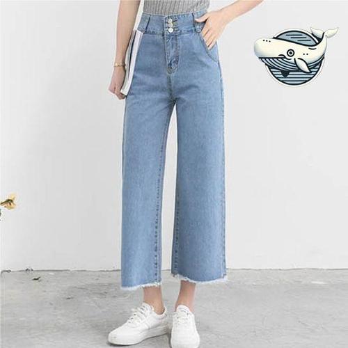 [옷자락]여자 9부데님 와이드핏 뒷밴딩 연청 여름 통 청바지_3
