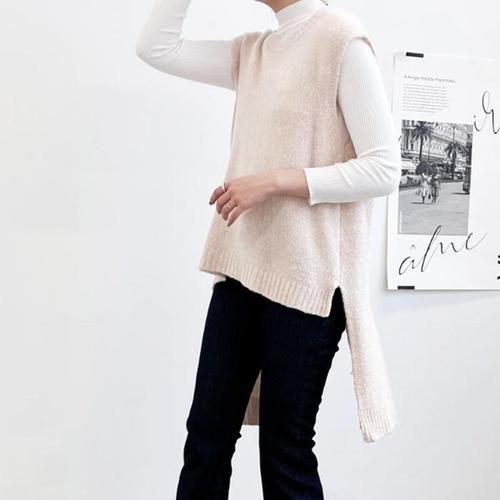 [모노무드]모노무드 라운드넥 언발 옆트임 롱니트조끼 레이어드룩