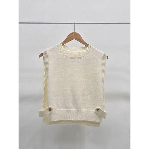해피유통 여성 브이넥 옆트임 니트 옆단추 베스트 민소매 톱 jh lmy