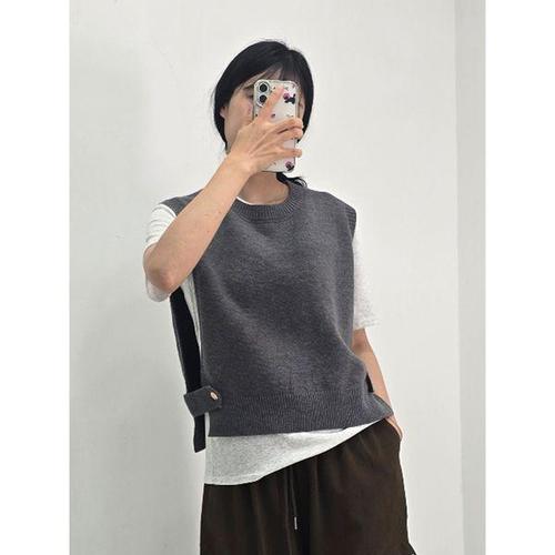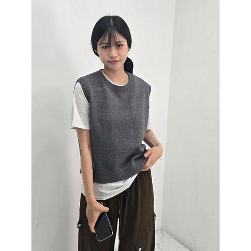 [샵앤]여성 라운드 옆트임 세미크롭 레이어드 니트 조끼 SIU-WVS-4941-차콜