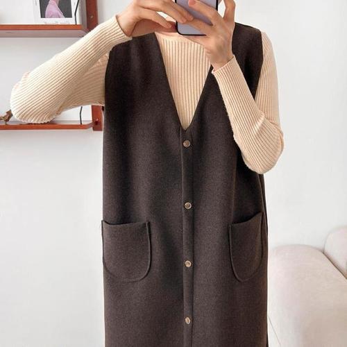 [에이치플러스몰]여자 니트롱조끼 여자니트조끼 옆트임 롱조끼 니