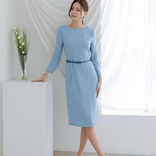 [신상오픈런]딱떨어지는 일자핏 하늘색 예복 하객 9부소매 슬림원피스 (30546441)