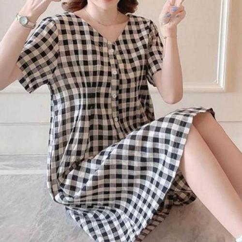 [에이치플러스몰]단추 반팔 캐주얼 브이넥 캐주얼 필수템 원피스 예쁜
