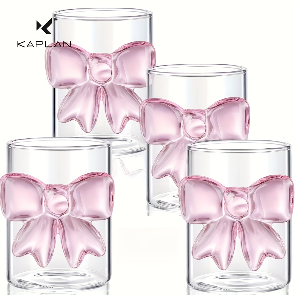 TEMU 4개입 KAPLAN 대형 리본 유리컵 | 고 붕규산 투명 내열 유리, 발렌타인데이, 크리스마스, 어버이날, 생일 선물로 이상적