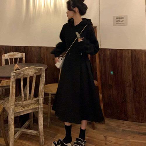 [셀럽하우스]예쁜 CRDR9490 후드 플레어 롱 긴팔 캐주얼 여자 원피스 치마