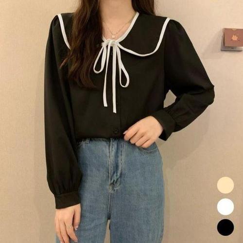 [셀러허브_여성트랜드패션]ONM 예쁜 여성 스타일 여성스러운 넓은 카라 리본 매