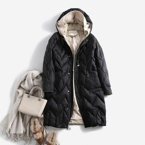 POMTOR 여성 겨울 후드 오버핏 롱 코트 패션 오리털 야외 경량패딩 패딩