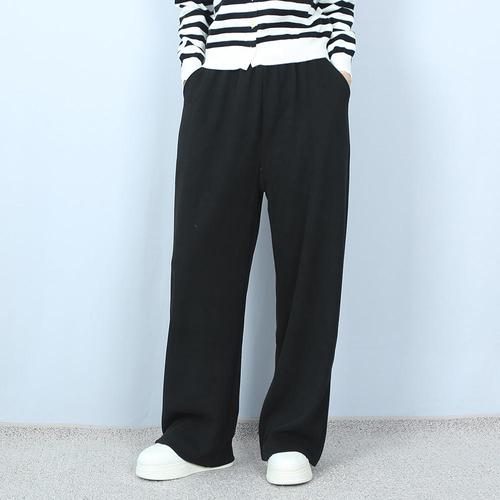 [파라노말샵]4색 보들 배색 니트 밴딩 와이드 팬츠 통바지 (파라노